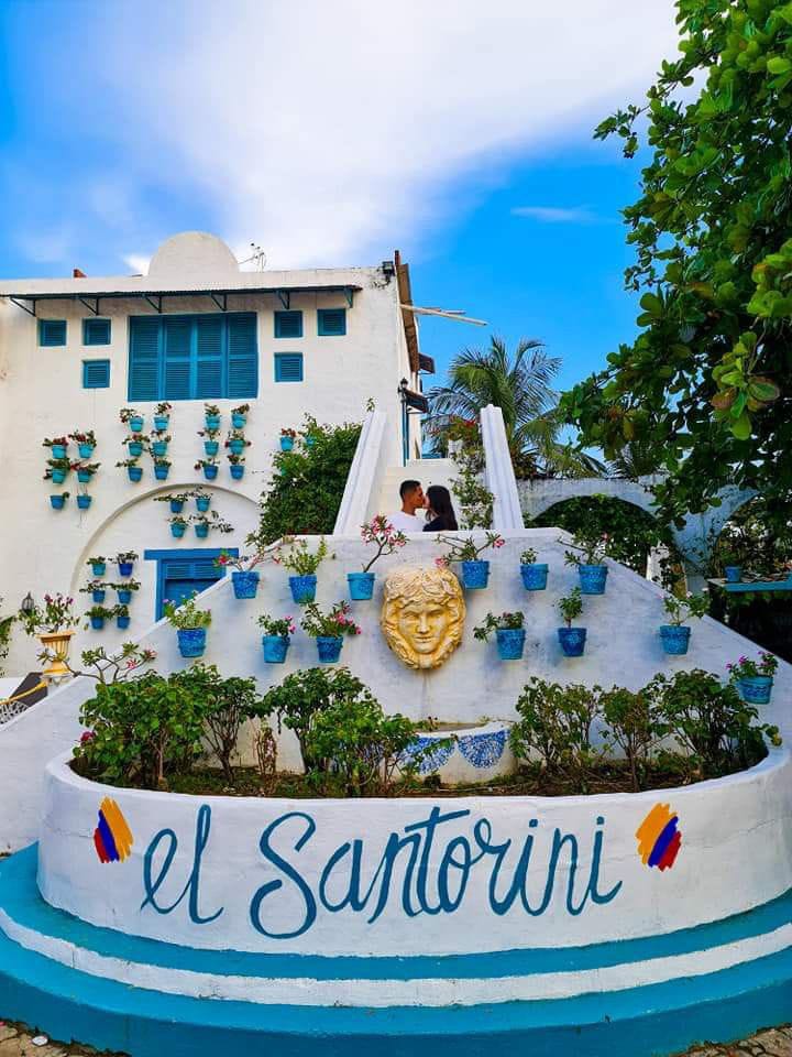 ⁣Un pequeño barrio inspirado en la típica arquitectura cicládica de Santorini: edificaciones de color blanco, y puertas, ventanas y cúpulas azules que contrastan con el azul intenso.